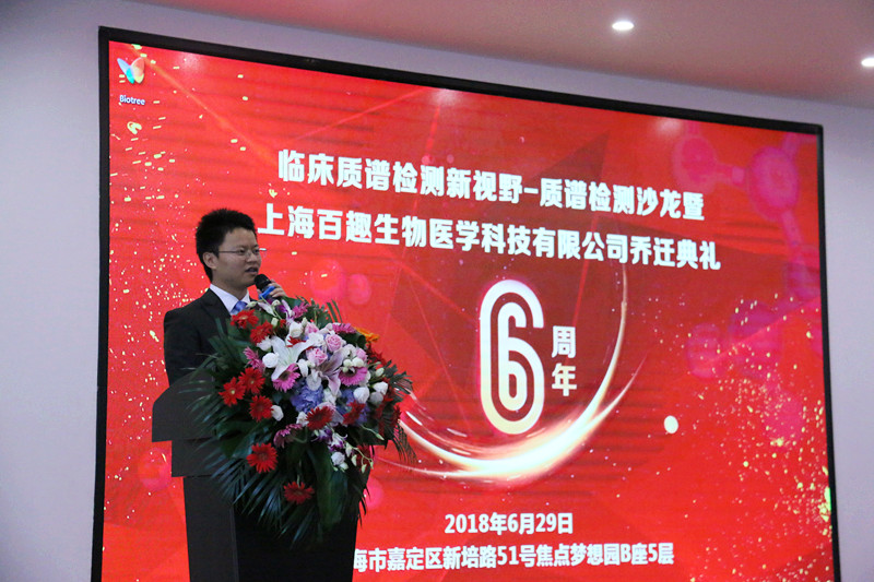 乔迁典礼上 ,上海百趣生物首席执行官邓军亮首先做了热情洋溢的致辞,回顾公司六年发展的峥嵘历程并介绍公司目前的发展情况。他表示:“本次乔迁,改善了公司的办公条件,加强了实验室配置,并且建立了超过500平方米的健康研究中心。我们百趣人将牢记‘提升生命的质量’的宗旨,以‘减少人类因疾病而产生的痛苦’作为自己的使命,争取在五年内成为行业权威的检测分析服务机构。未来,我们将定位于慢性疾病如糖尿病、肥胖、心血管病、癌症等的研究与产品开发,希望能够开发出更多的产品造福于民。”
